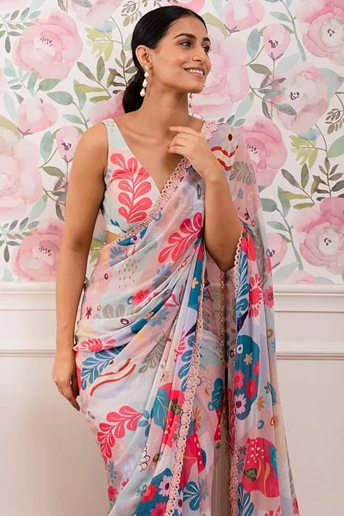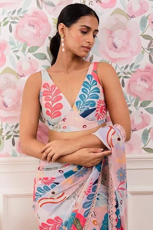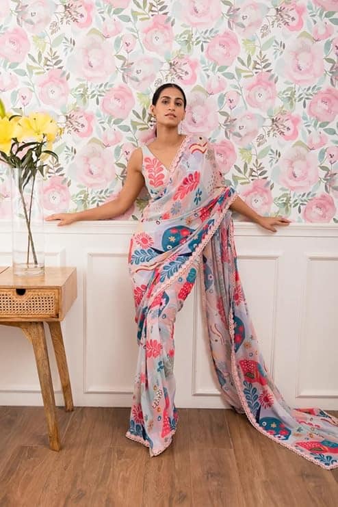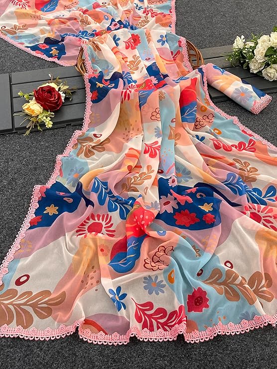 - Saree Material : Georgette || Blouse Material : Georgette|| Work: Floral Digital printed saree